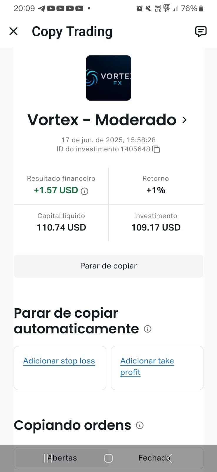 O valor mínimo sugerido é de US$ 100,00 (dólares americanos). Esse depósito é feito diretamente na sua conta na corretora, logo após você garantir o acesso ao Retorno Automático Internacional. É esse capital que o algoritmo vai usar pra operar no automático e começar a gerar os primeiros resultados — sem precisar você encostar no mouse.